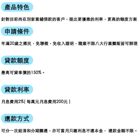 - 新莊區汽車轉當可降息增額度2020-07-02